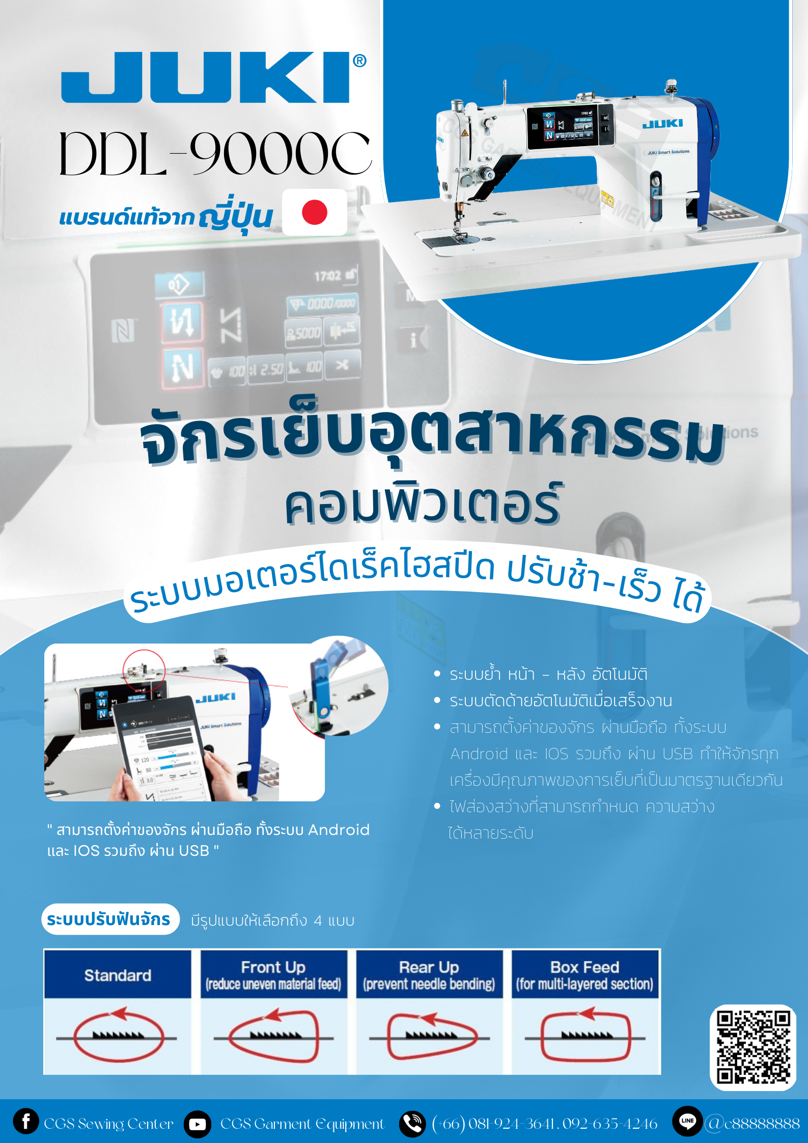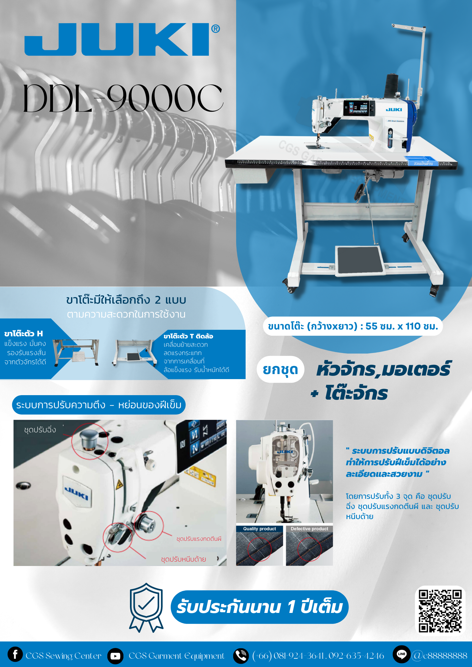 JUKI จักรเย็บผ้า เข็มเดี่ยว อุตสาหกรรม รุ่น DDL-9000c ระบบมอเตอร์ไดเร็คไฮสปีด ปรับช้า-เร็วได้ ตัดด้าย ย้ำหน้าหลัง ออโต้