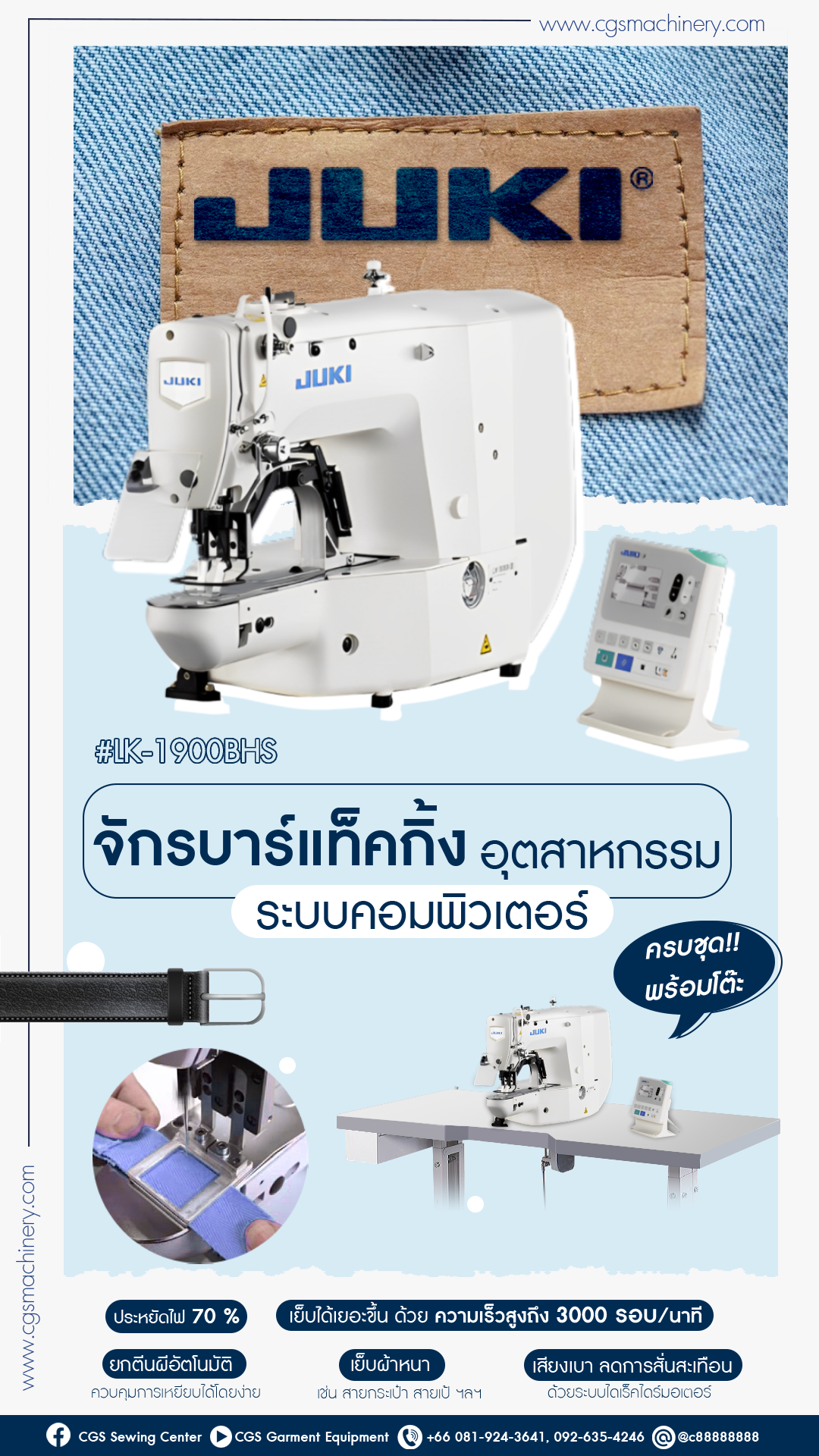 JUKI จักรเย็บ บาร์แท็คกิ้ง อุตสาหกรรม ระบบคอมพิวเตอร์ รุ่น LK-1900B-SH