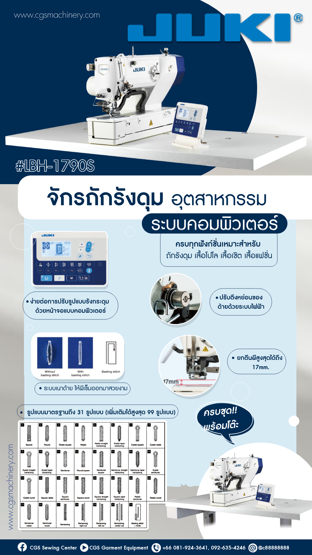JUKI จักรถักรังดุม อุตสาหกรรม ระบบคอมพิวเตอร์ รุ่น LBH-1790S ครบทุกฟังก์ชั่นเหมาะสำหรับ ถักรังดุม เสื้อโปโล เสื้อเชิต เสื้อแฟชั่น