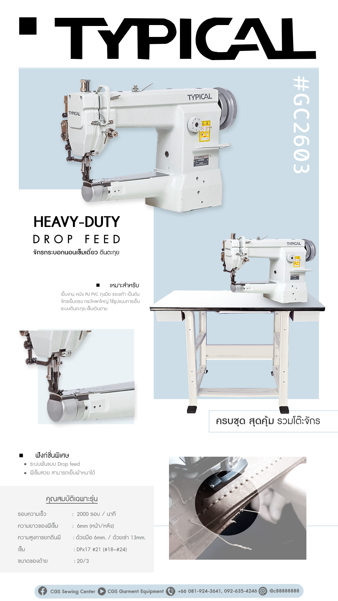 TYPICAL จักรกระบอกนอนเข็มเดี่ยว กะโหลกใหญ่ ตีนตะกุย-เข็มเดินตาม อุตสาหกรรม รุ่น GC-2603