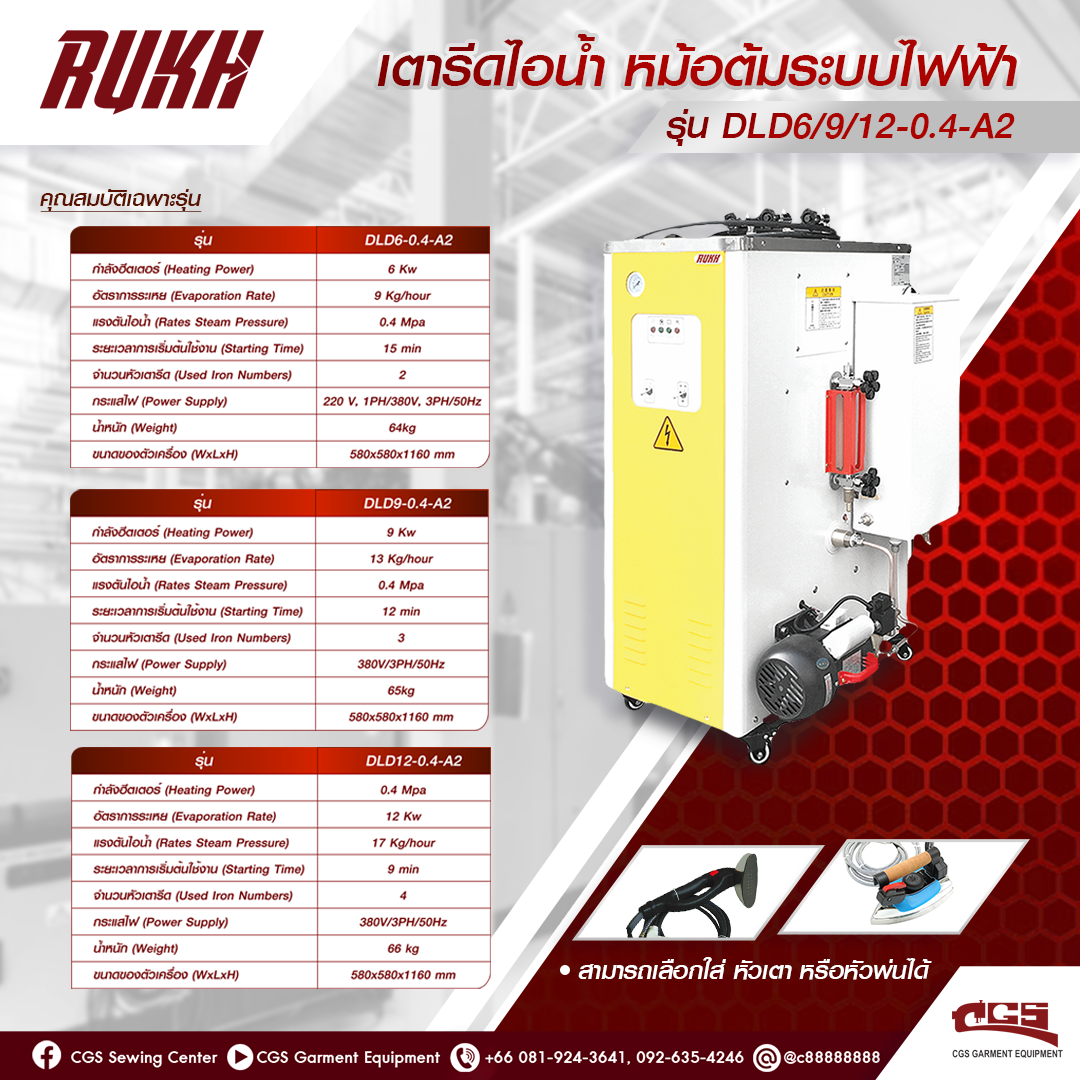 RUKH เตารีดไอน้ำ อุตสาหกรรม รุ่น DLD 6/9/12-0.4-A2