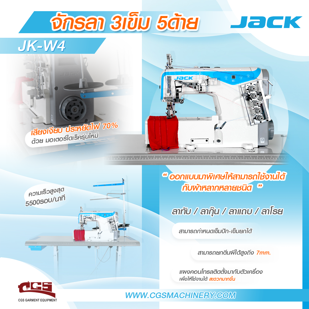 JACK W4 จักรลาไดเร็คไดร์ฟ ลาทับ ลากุ๊น ลาโรย ลาแถบ จักรลาอุตสาหกรรม จักรเย็บผ้าแจ็ค