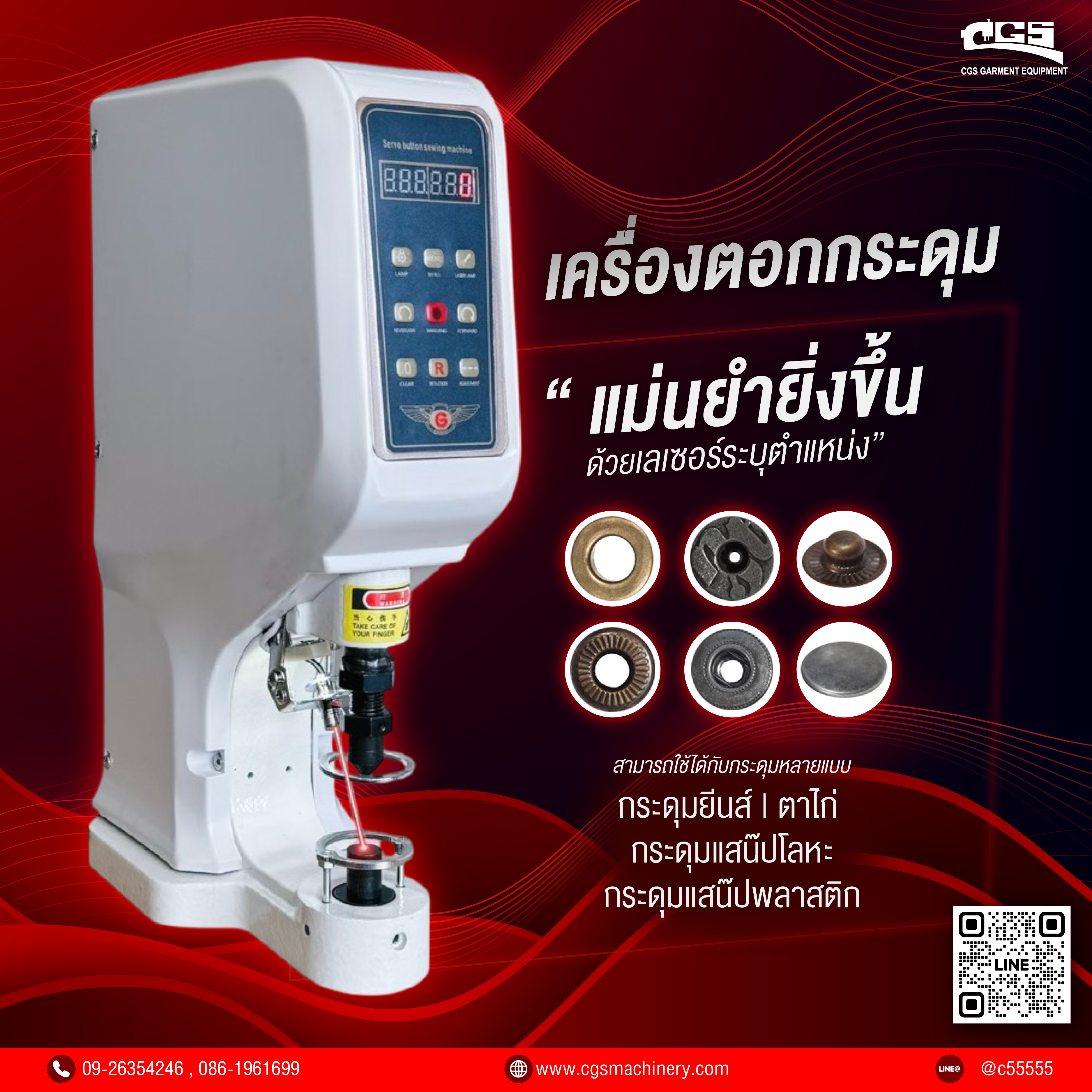 เครื่องตอกกระดุม ตอกตาไก่ พร้อมเลเซอร์ชี้ตำแหน่ง