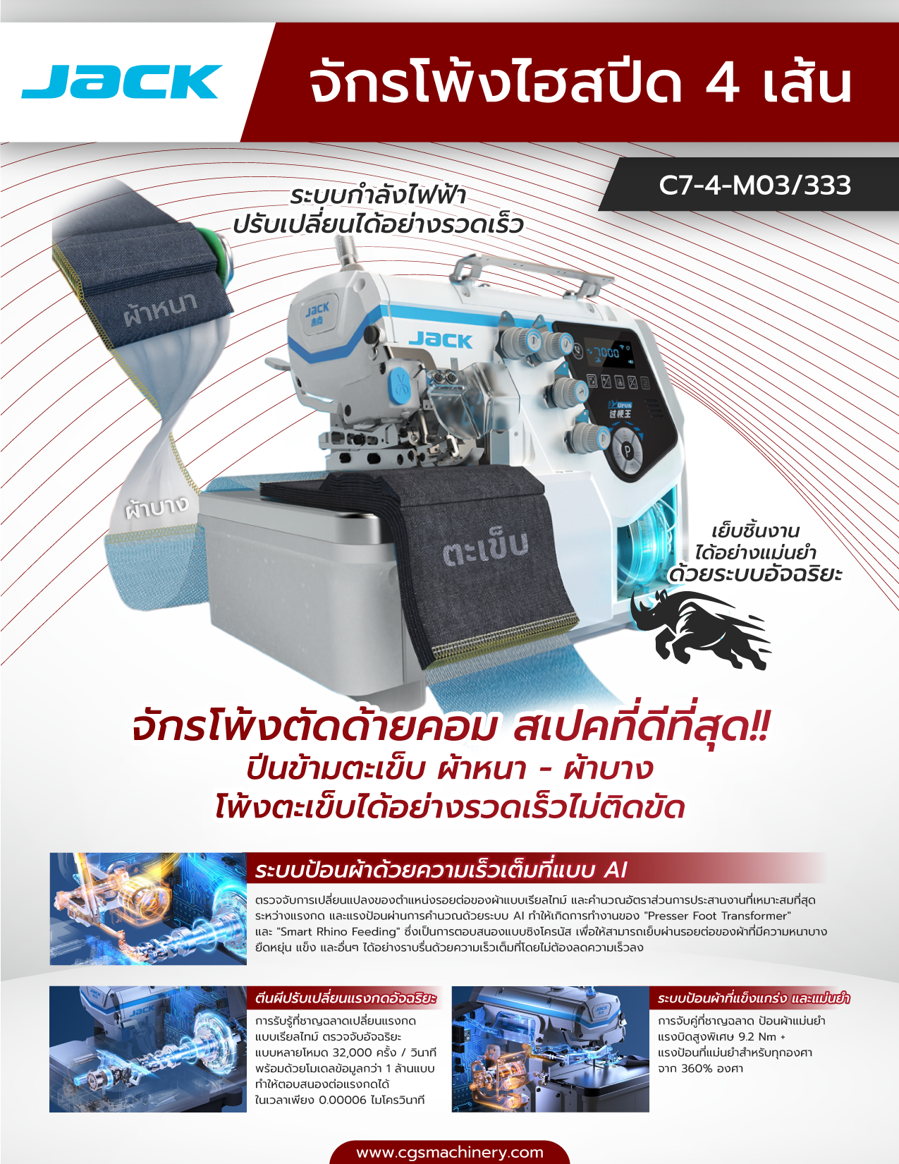 JACK C7-4-M03/333 จักรโพ้งไฮสปีด 4 เส้น จักรโพ้งไฮสปิด ตัดด้ายคอม สเปคที่ดีที่สุด
